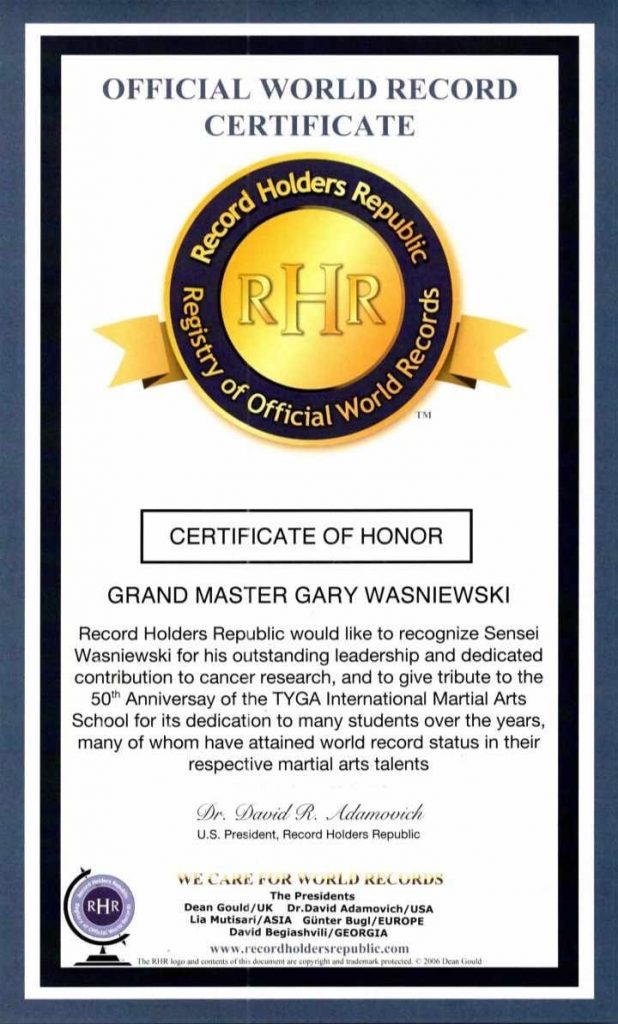 GM Gary Wasniewski Founder TYGA International, has been recognised worldwide for his incredible ability and dedication to the martial arts, which have earned him fame and respect all over the world. For over 50 years he has been pushing the boundaries of martial arts, starting in traditional karate/full contact, he then created the modern TYGA system. He is a World Martial Arts Champion. GM Gary Wasniewski continues to train every day without fail. He has been on the front covers of 23 world martial arts magazines. GM Gary has received awards from every major Hall of Fame around the world.